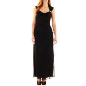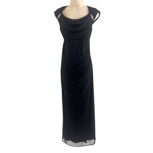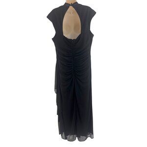 R&M Richards Black Sparkly Mesh Cascade Ruffle Long Gown Dress Size 16W 1X Plus