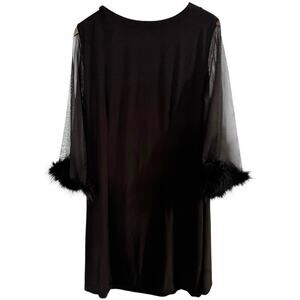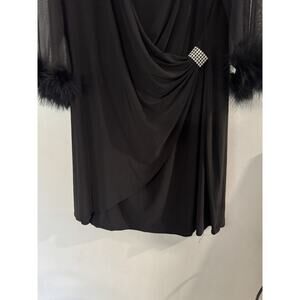 R.M Richards Black Stretchy Ruched Dress Sheer Sleeve Fur Trim Size 18W