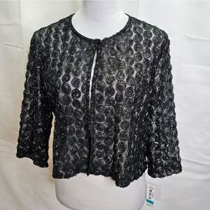 R&M Richards Black Floral Bolero Style Dressy Jacket Size 16