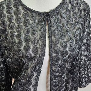 R&M Richards Black/Silver Floral Bolero Style Dressy Jacket Size 16