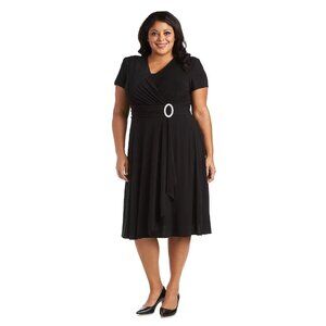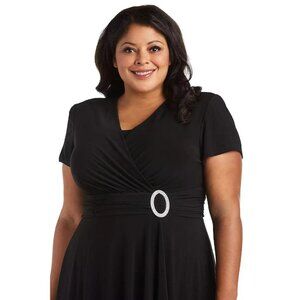 R&M Richards Cascade Jersey Dress W/ Brooch Plus Size 22W Black MSRP $79