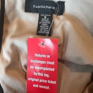 Sparkle through the evening in this gorgeous short cocktail dress from R&M Richards. Styled with flattering details and great stretch , this knee-length dress is framed with shimmering accents and a sheer drape overlay ( covers your shoulders ) and taupe lining Back Zipper Closure and Sheer is Split on Back