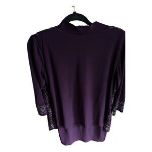 R&M Richards Plum Deep Purple Maroon Eggplant Wine Colored Flowy Sheath with Scoop Neck Dress Silver Embroidery Size 10