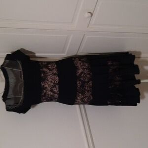 R&M Richards black dress Mesh at neckline and dress is highlighted with lace areas and have an underneath nude color lining Good condition