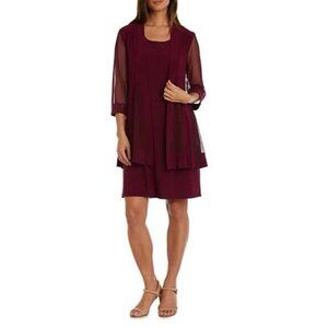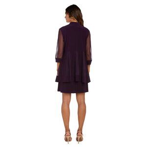 R&M Richards Plum Sleeveless Dress & Sheer Jacket Set with Sequined Details Size Small Polyester/Spandex Blend