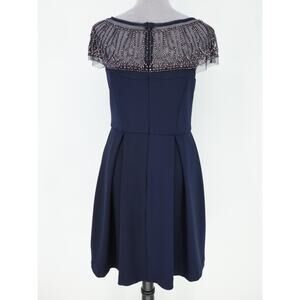 R&M Richards Dress Womens 6 Navy Blue Beaded Mesh Shoulders Bra Cups Zip Party