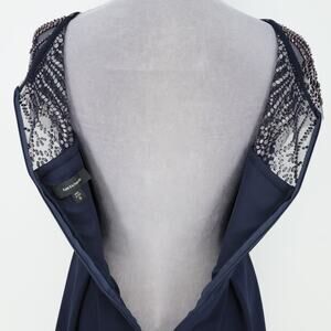 R&M Richards Dress Women's 6 Navy Blue Beaded Mesh Shoulders Bra Cups Zip Formal Wedding