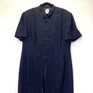 R&M Richards Duster Jacket Womens 2XL Navy Blue Glitter Frog Buttons Evening