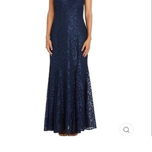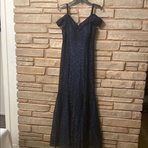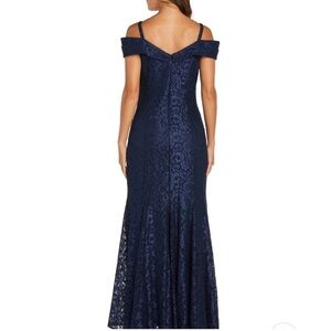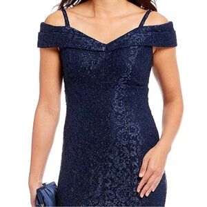 R&M Richard’s Elegant Navy Off-Shoulder Lace Gown Size 8 Navy Blue