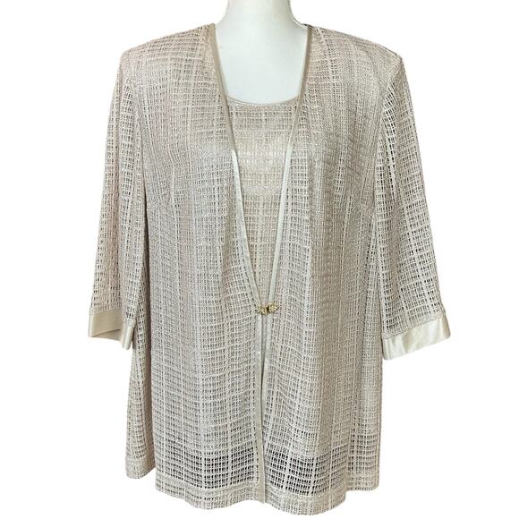 R&M Richards Evening Top Sze 22 WP Shimmery Cream Sheer Lined Classic Eventwear