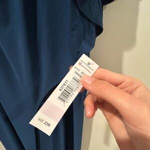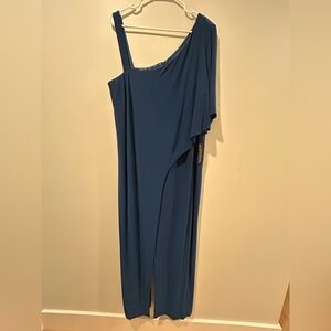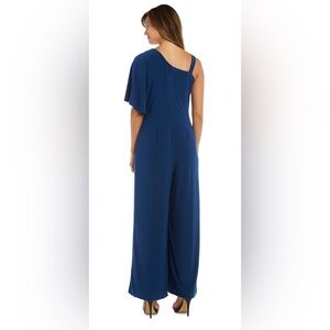 R&M Richards Flare Jumpsuit with Overlay and Draped Sleeves Peacock Blue