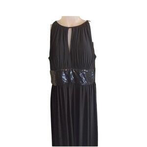 R&M Richards Formal Black Sequin Waist Peephole Neck Stretch 16 W Dress
