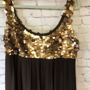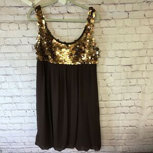 R&M Richards Gold Sequin Chocolate Tank Dress Size 12