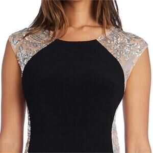R&M Richards Illusion Knee-Length Sheath Dress with Sheer Inserts and Sequins 22