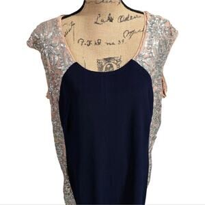 R&M Richards Illusion Knee-Length Sheath Dress with Sheer Inserts and Sequins Plus Size 22W