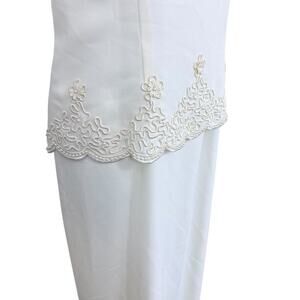 This R&M Richards dress is a sophisticated choice for formal occasions like weddings or cocktail parties. The ivory cream color and embroidered details add an elegant touch to the dress, which features a round neckline, short sleeves, and a long hemline. The sheath style is flattering and the dress is lined for added comfort. The zipper closure at the back makes it easy to put on. Made of polyester material, this size 12 dress is perfect for women looking for a chic and timeless outfit option for the spring, summer, or fall seasons.