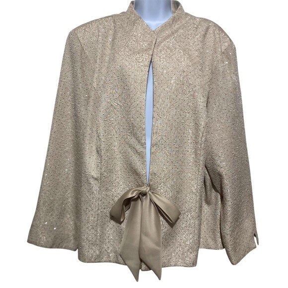 R&M Richards Jacket Womens 24W Champagne Glitter Open Front Tie Waist Evening