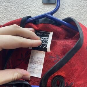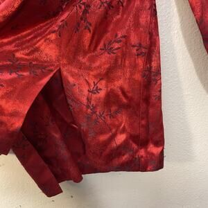 R&M Richards Karen Kwong Vintage Kimono Jacket Duster Frog Oriental Asian SZ 12 red black satin