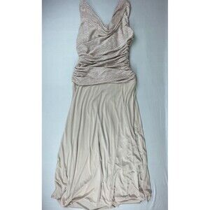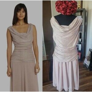 R&M Richards Long Formal Cowl Neck Dress Women's Size 14 Pastel Rose Pink Wedding Prom.