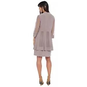 R&M Richards Mesh Panel Jacket Dress Size 3X Taupe Knee Length Elegant Cocktail