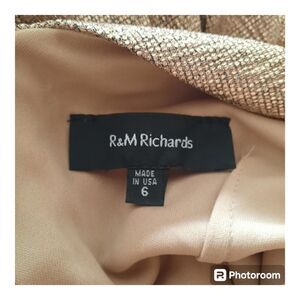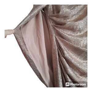 R&M Richards Metallic Rose Gold Drape Sleeve Formal Gown