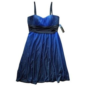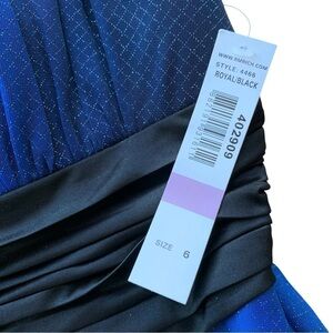 R&M Richards Metallic Shimmer Ombre Ruched Formal Dress Blue Black Size 6
