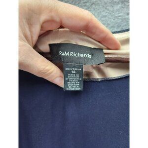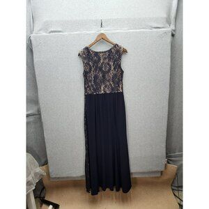 R&M Richards Navy & Beige Sleeveless Lace Evening Gown Size 14