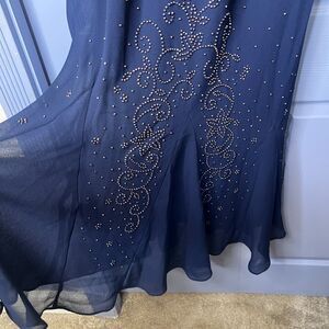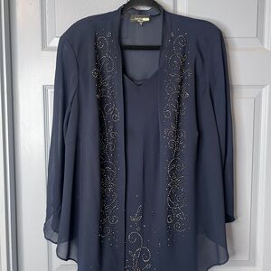 R&M Richards Navy Blue Jeweled Beaded Chiffon Formal Evening Dress SET Size 18W