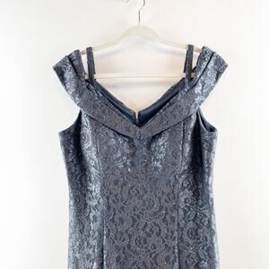 R&M Richards Off The Shoulder Lace Maxi Dress Gown Navy Blue 14