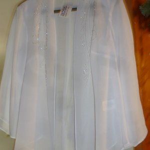 R&M Richards OpenFront Beaded Draped White Cardigan Sz 16W Timeless Elegance