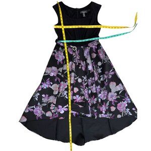 R&M Richards Petite 4 Black Purple Floral Fit & Flare Belted Holiday Party Dress