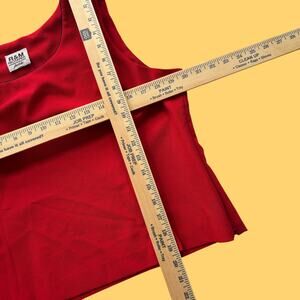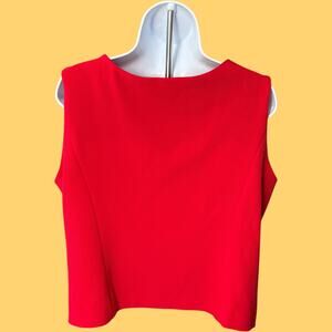 Dressy scoop-neck tank in red textured crepe with a smooth, lightly stretchy feel. Classic shell silhouette for layering or occasion wear. Solid color, clean lines. Condition: Excellent.