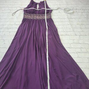 R&M Richards Purple Maxi Party Dress beaded/sequin embroidered size 4