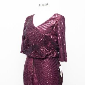 R&M Richards Style 9788 “Beaded Blouson Gown” — Size 12, Color: Plum.