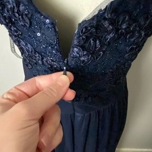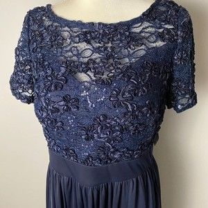 R&M Richards Sequin & Ruffle Gown 12 NWT Navy Blue.