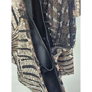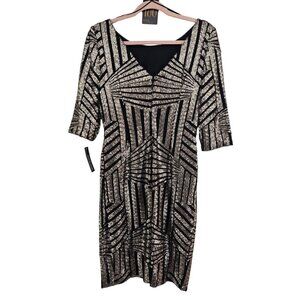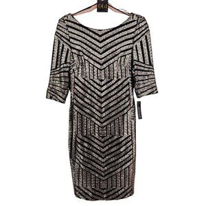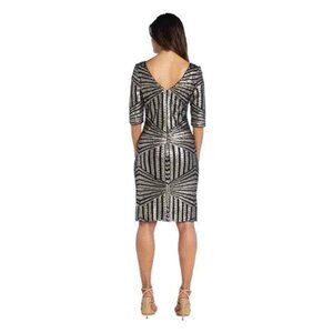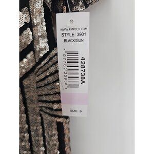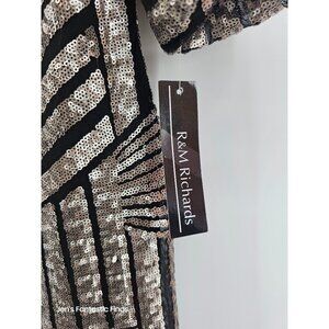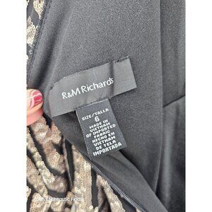 Elevate your evening attire with this R&M Richards Black Sequined Sheath Dress in size 6. Its sleek design and sparkling sequins make it a standout piece for any formal event.