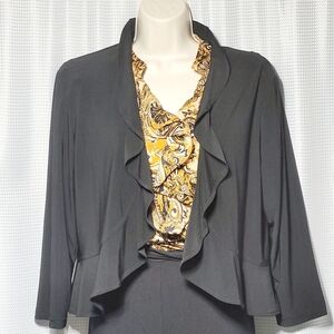 R&M Richards Silky Black Ruffled Jacket (L) Made in U.S.A.