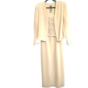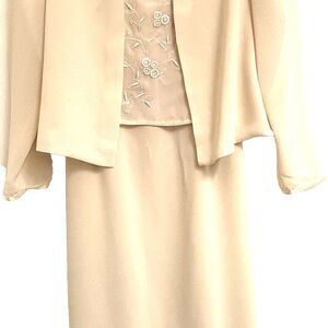 R&M Richards, Size 18, Cream, 2-Piece Dress with Jacket; Embroidered Bodice NEW!