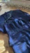 R&M Richards Size 8 Blue Shimmer Glitter Metallic Beaded and Embroidered Layered Flutter Dress With straps and empire waist 3/4 Length Sleeve Cropped Jacket, invisible back zipper
