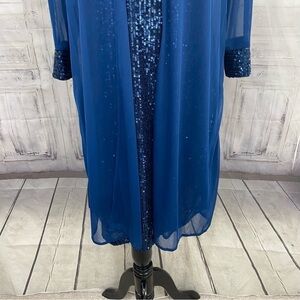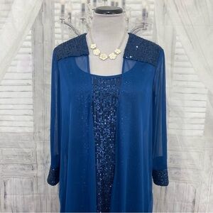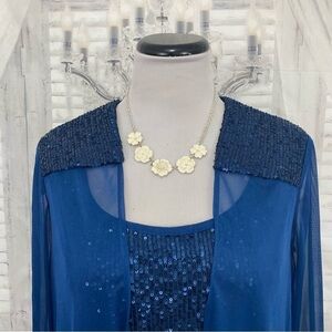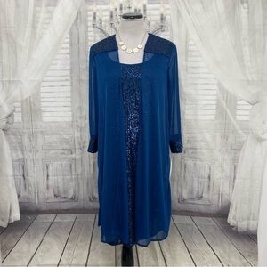 R&M Richards Size 8 Peacock Blue Two-Piece Embellished Shift Dress with Jacket