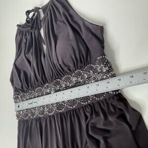 R&M Richards Sleeveless Halter Neck Gown with Beaded Waist Brown Women's Size 10