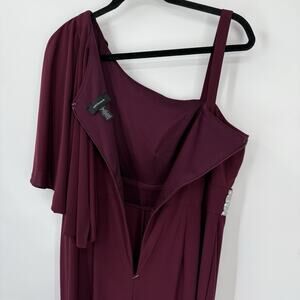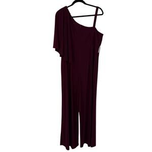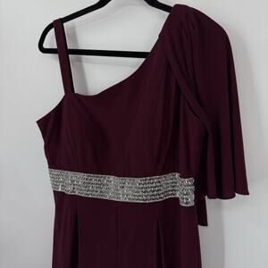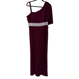 R&M Richards Sleeveless Jumpsuit size 14 Maroon Crystal Embellished waist, 1 shoulder is draped