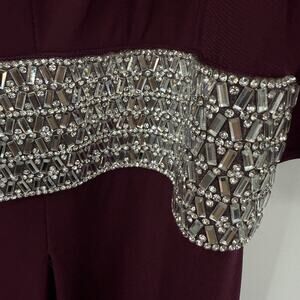 R&M Richards Sleeveless Jumpsuit size 14 Maroon Crystal Embellished Event