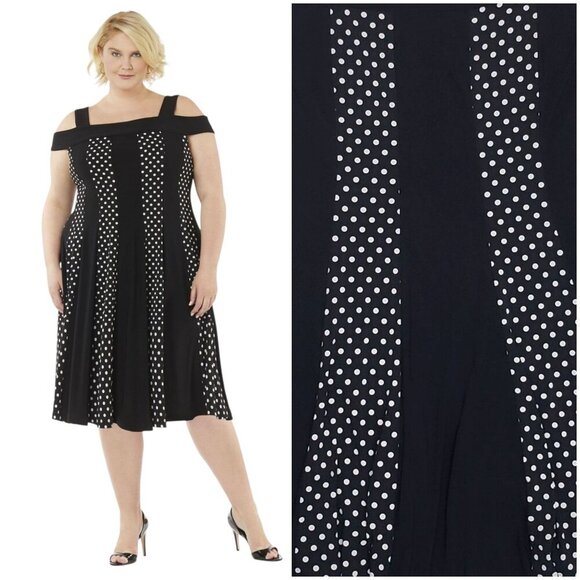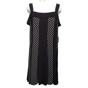 Description: R&M Richards Sleeveless Off Shoulder Dress Square Neck Panel Polka Dot B & W Size 3X NWT