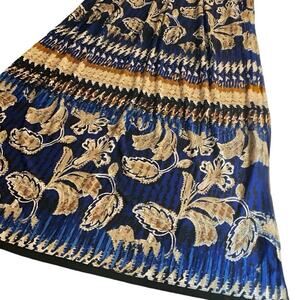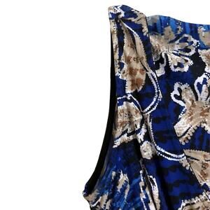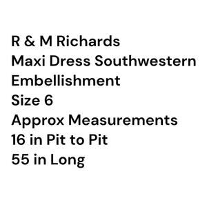 R&M Richards Southwestern Maxi Dress Blue Tan Size 6 A-Line Stretch Travel Soft