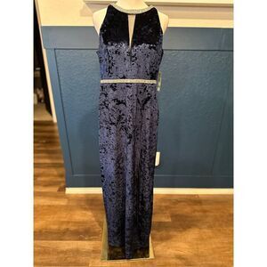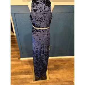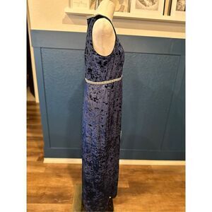 R&M Richards Split Neck Belted Side Slit Velvet Maxi Evening Dress