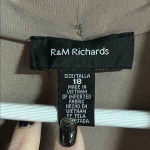 Indulge in comfort with this suit separate from R&M Richards, featuring a classic shawl collar and a relaxed silhouette that drapes beautifully. The soft, fluid fabric ensures a luxurious feel, making it an ideal choice for for casual or more refined settings. . Its neutral tone and simple design offer timeless elegance and versatility.