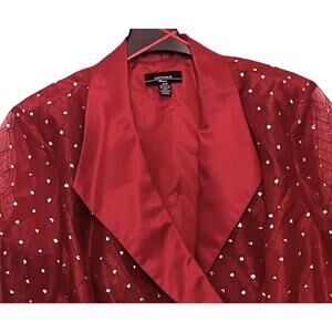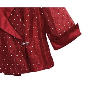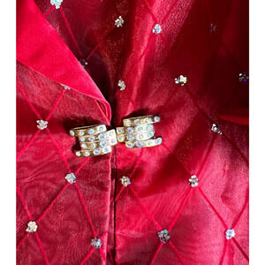 RM Richards Top Womens Size 24 Red Sheer Satin Trim Jewel Clasp Sequins Vintage