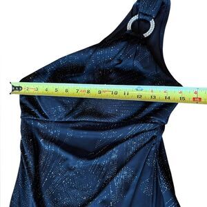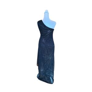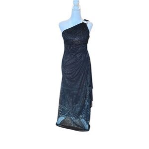 R&M Richards Vintage Maxi Dress One Shoulder Draped Black Silver Sparkle Size 4P
