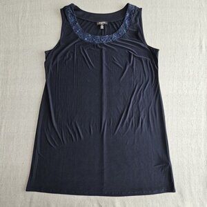 R&M Richards Woman 2 Piece Dress Suit Navy with Blue Embellishments Quiet Luxury